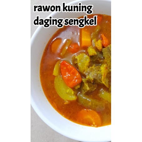 rawon kuning dengan daging sengkel pilihan.. per porsi daging 250gr bisa u/ 3-4org