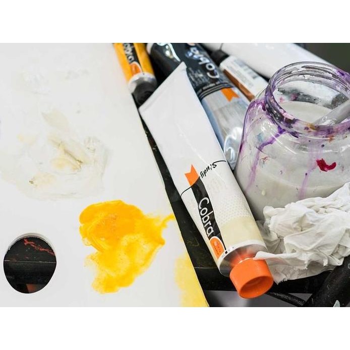 Cobra, the water mixable oil colours of Royal Talens. A type of paint that always produces a wonderful and long-lasting result without the use of solvents such as white spirit and turpentine. And that is better for your health as well as your immediate surroundings. What's more, the equipment is easy to clean with soap and water.