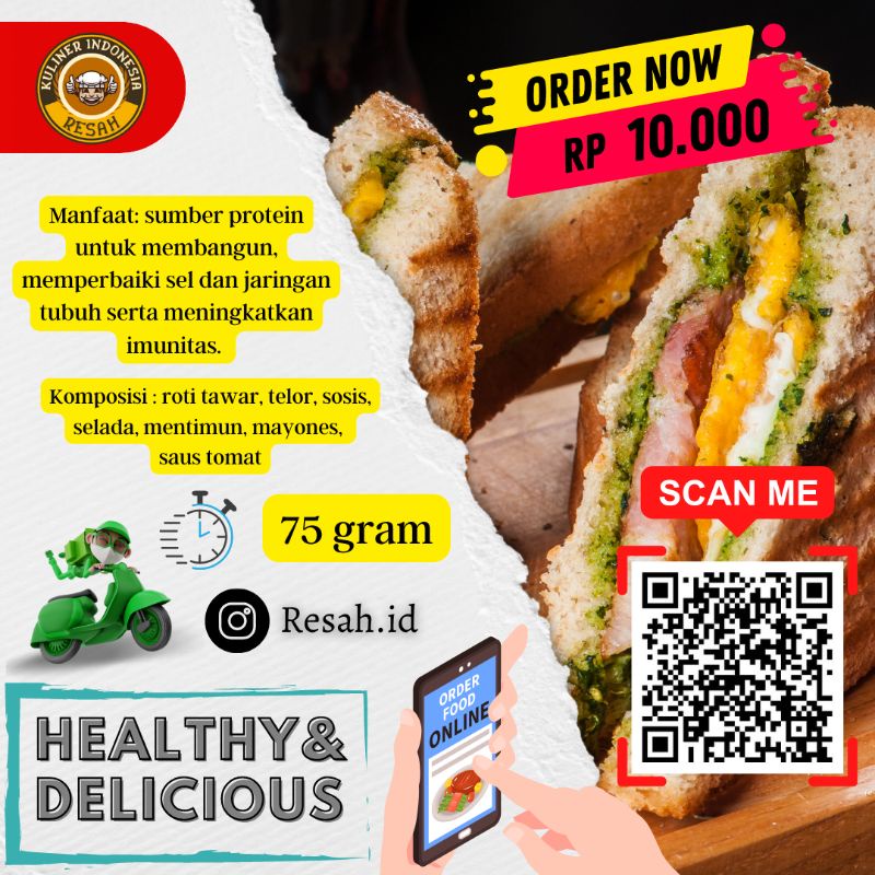 Sandwich merupakan makan kuliner yang termotivasi dari roti tawar dan di inovasikan dengan bahan-bahan berkualitas sehingga menjadikan sebuah makanan (sandwich) yang memiliki nilai gizi sehat bagi tubuh dan menjadikan makanan alternatif bagi kalangan pelajar maupun pekerja.