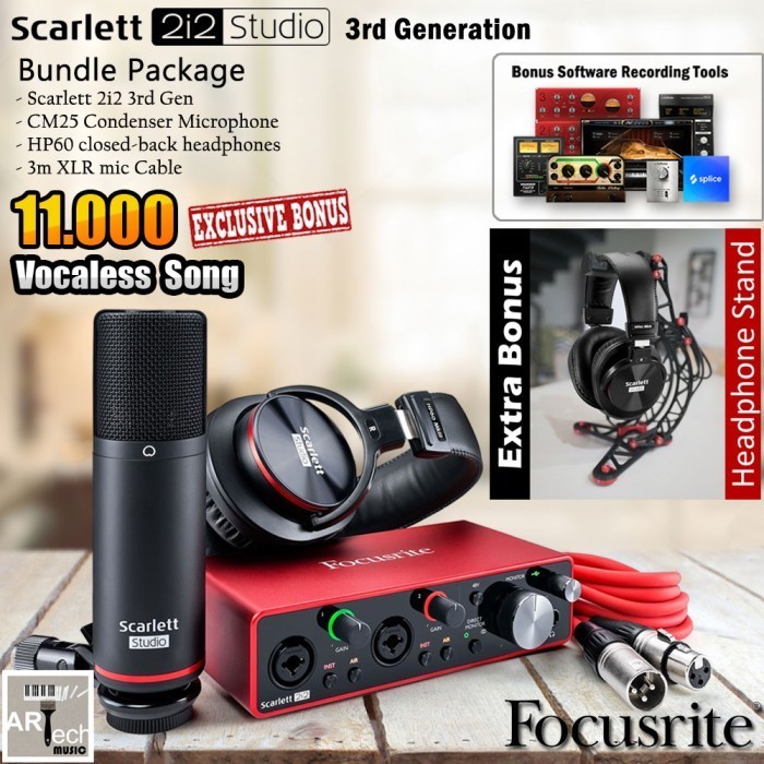 Paket home recording dari focusrite yang terdiri dari :