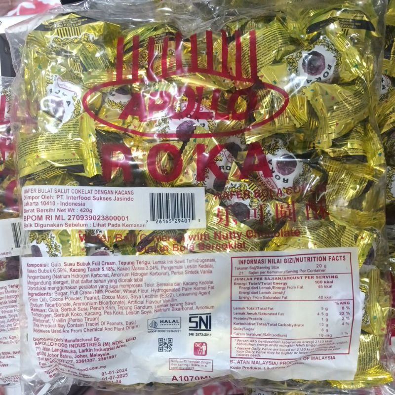 wafer bulat salut cokelat dengan kacang