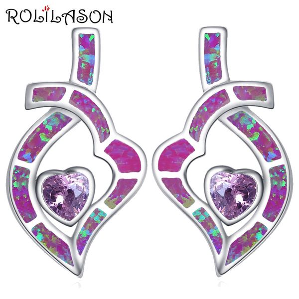 rolilason модные очаровательные нежные серьги для девочек розовый огненный опал серебро штампованные серьги стержня цирконий ювелирные издел, Golden;silver