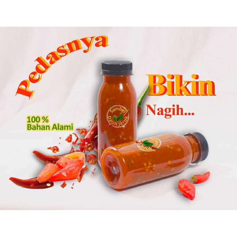 sambel daun jeruk dengan ukuran 100 ml, tahan lama hingga berbulan bulan tetapi simpan di lemari pendingin setelah dibuka, sambel daun jeruk nipis bisa di makan apa aja dan bisa dimakan sama ayam lalapan atau ayam goreng dan ayam krispi