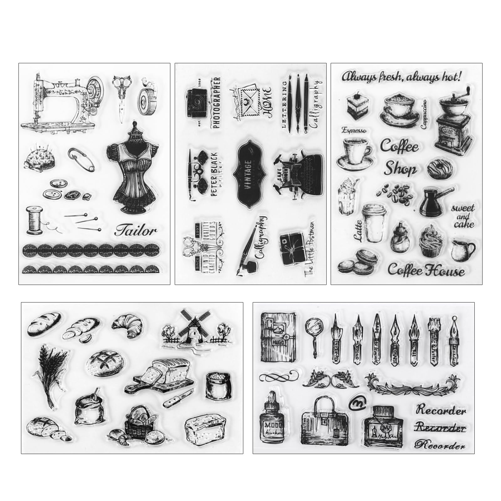 seimeinoki Прозрачный набор Ретро Жизнь Прозрачный Силиконовый Прозрачный Планер Письмо Ручная Работа DIY для и Тиснения Штампы, 5, Сценарии, Штампы, Ручка,
