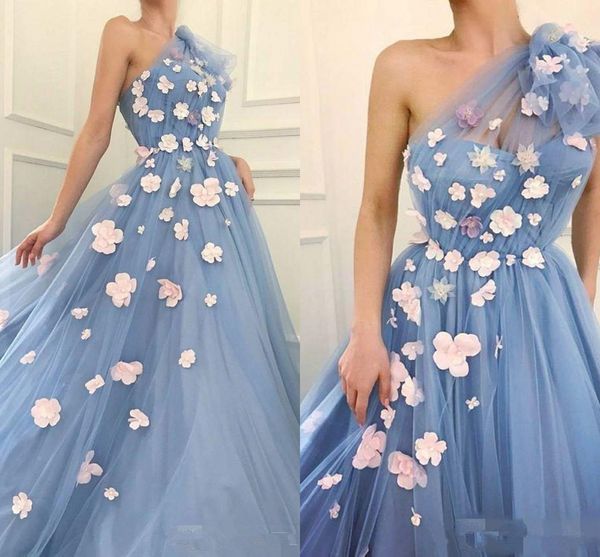 sky blue пром платье одно плеча линии розового 3d цветочной аппликация тюль сшитой вечернее платье формального случай партия wear, Black