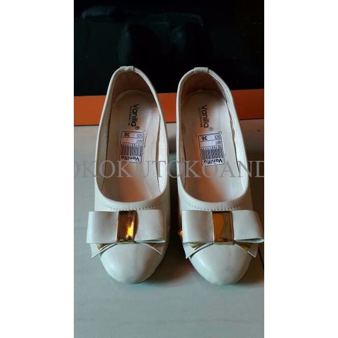 Sepatu Heels cream Pita emas (S0119)