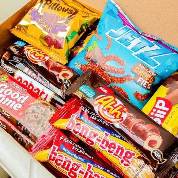 aneka snack di box cocok untuk bingkisan kado ultah buat anak
