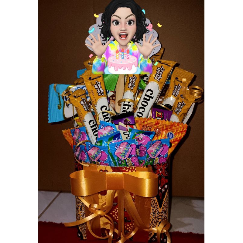 terdiri dari makanan ringan,permen,bisa juga minuman segar, harga tergantung request.