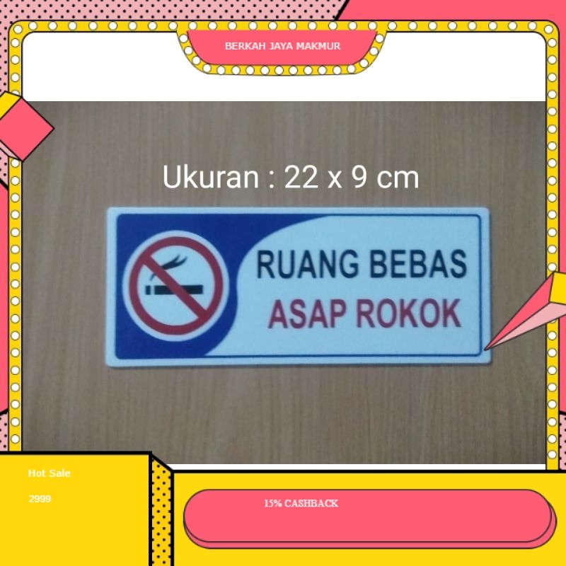 stiker Sign label "RUANG BEBAS ASAP ROKOK" Sign label sticker tulisan " Ruang Bebas Asap" bahan stiker anti air mudah digunakan tinggal tempel dan awet