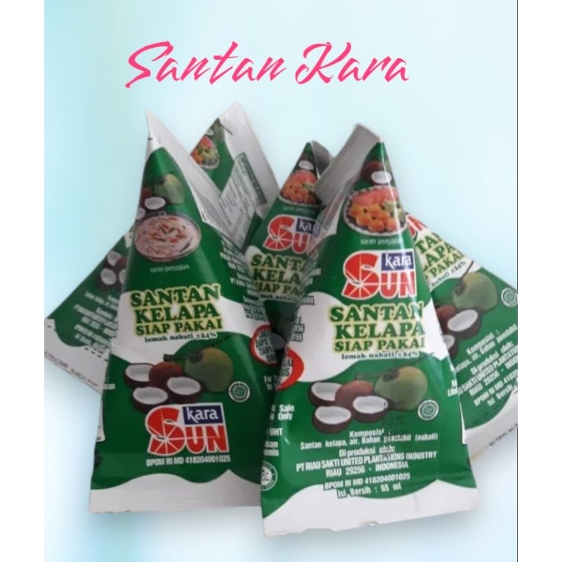 Sun Kara Santan merupakan santan kelapa siap pakai yang terbuat dari air kelapa yang dikukur, diolah dan dikemas secara modern & higienis menggunakan sterilisasi tinggi (UHT), sehingga kesegaran & keaslian santan terjaga dengan baik, serta membuatnya tahan disimpan dalam waktu lama di dalam kulkas. Mengandung lemak nabati kurang lebih 25% dan juga dibuat tanpa pengawet sehingga aman digunakan. Jadikan Santan ini sebagai pengganti alternatif santan kelapa tradisional untuk menghasilkan masakan lezat bagi keluarga tercinta.
