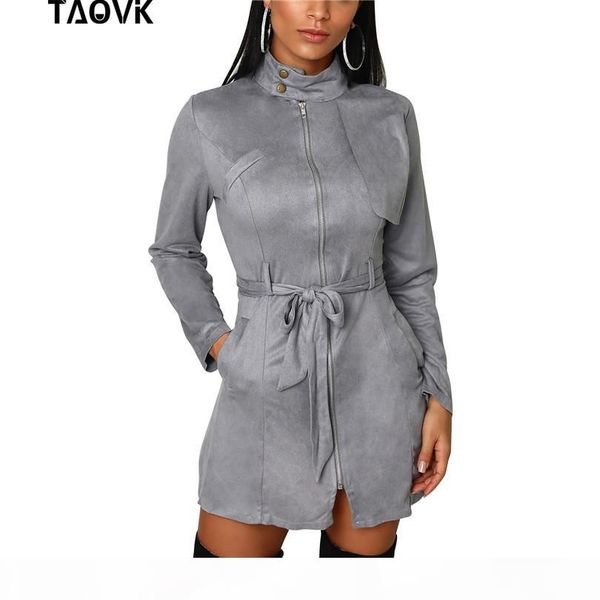 taovk женщины front zippers платье офис леди стенд воротник a-line длина коленей элегантная высокая талия беденные платья замшевые, White;black