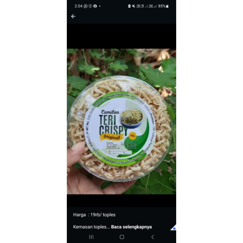 teri crispy kriuk di jamin original rasanya mntap selamat mencoba,varian rasa original,dan pedas