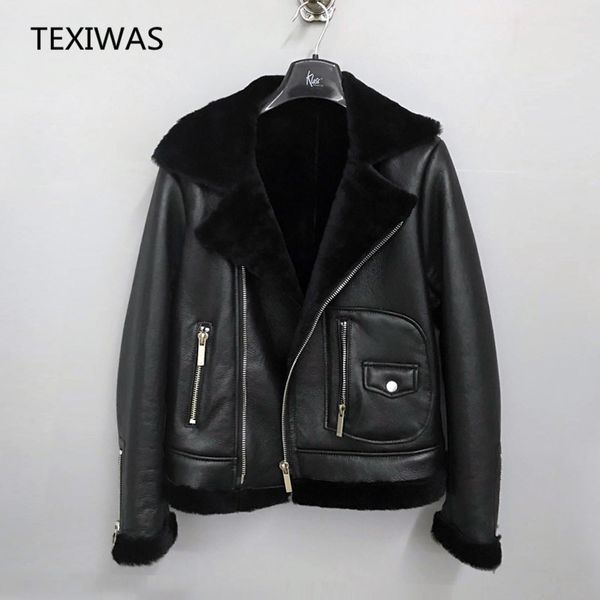texiwas куртка из натуральной кожи женская зимняя теплая сгущенная короткая шерсть на шубе из 100% натуральной кожи женская куртка-бомбер ве, Black