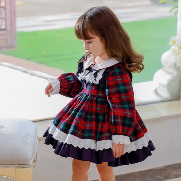 tutu осень / зима детские девочки платья англия стиль с длинным рукавом хлопковое платье для детей, Red;yellow