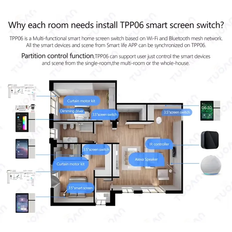 uniqueTUOAN TPP06 New Color Automate Multifunction Touch Screen Built-in BLE Mesh Gateway 3.5-Inch Tuya Smart Central Control