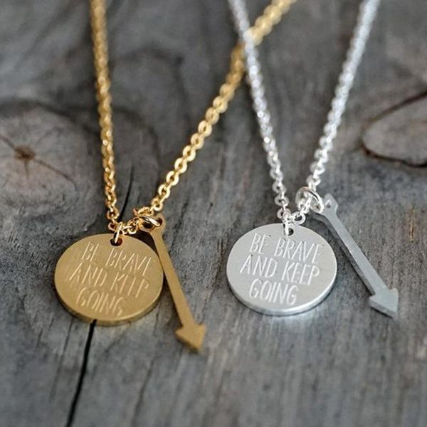 v привлечь bijoux femme 2020 уверенная золото choker письмо будьте храбрый keep going стрелка шарм ожерелье женщины мужчины ювелирные издели, Silver