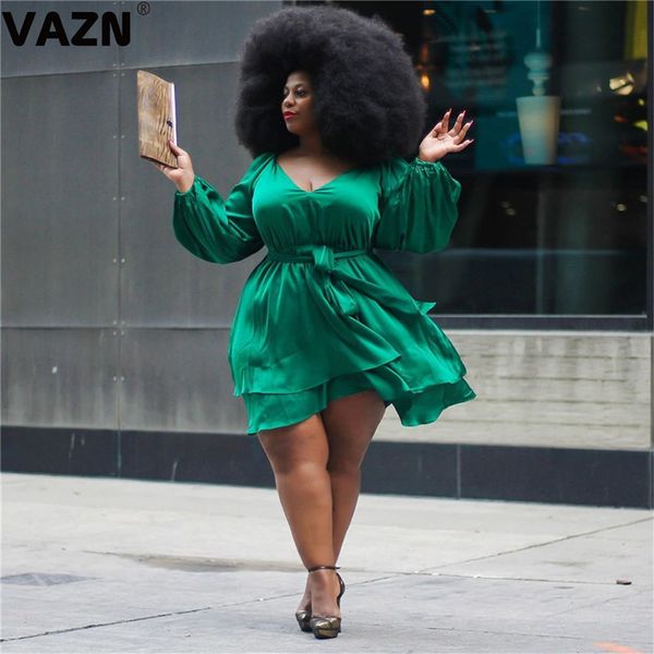 vazn осень жоржетта плюс размер платья популярные green fresh узелок неопрятная комбинезоны полный рукав талия женская коллекция midi платье, Black;pink