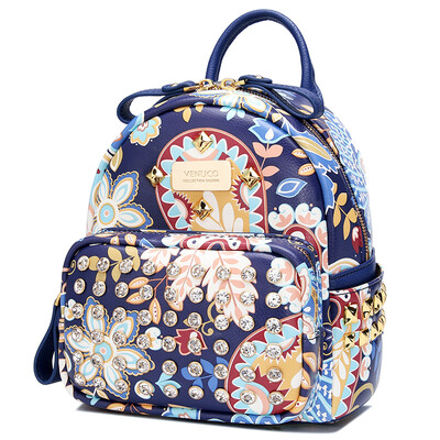 venuco оригинальная печать с бриллиантами женская сумка сумка мини колледжа ветер мило заклепки цветы дикий рюкзак сумка B04S236 сокровище синий