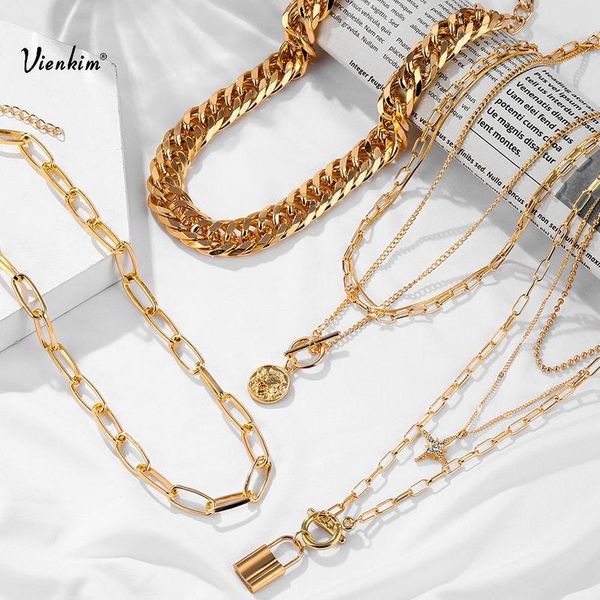 vienkim золотая слоистые панк-цепи ожерелье замок ожерелье для женщин модный колье padlock goth ювелирные изделия аксессуар sqcgbd, Golden;silver