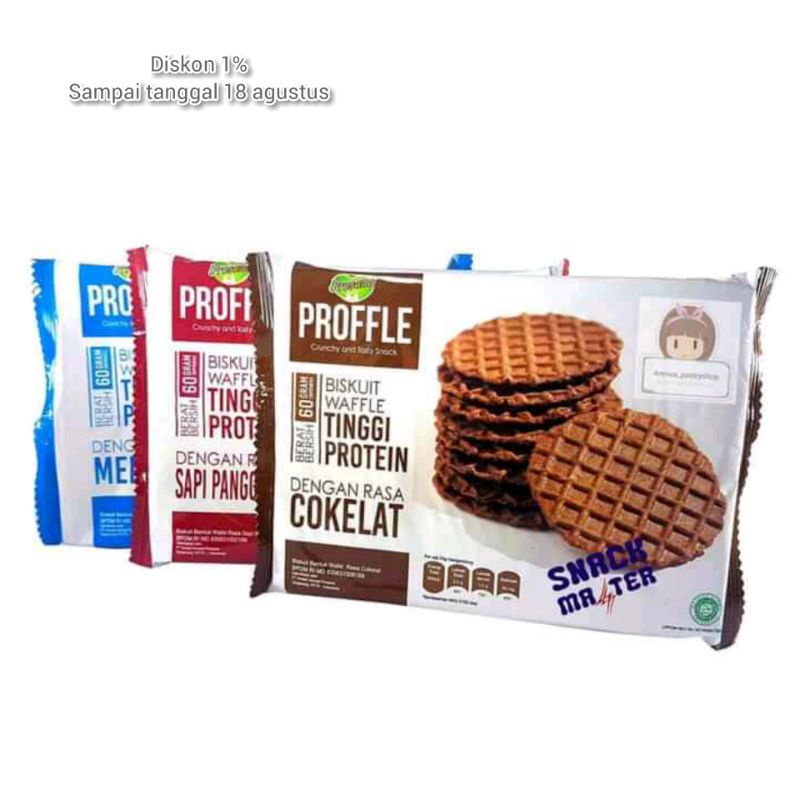 Produksi PT Kreasi Inovasi Prosana Tangerang. Biskuit Waffle dengan kandungan protein yang tinggi (12-15 gram) membantu membangun dan memperbaiki jaringan tubuhmu. Sangat cocok bagi kamu yang sedang berolahraga rutin dan dalam program pembentukan muscle mass.