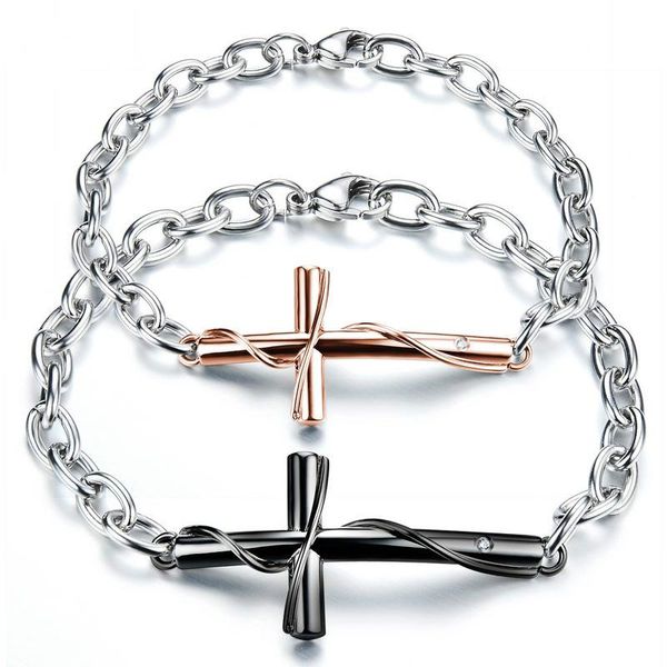 wawfrok нержавеющая сталь мужская и женская любителей браслет серебро / черный / розовое золото цвета крест браслет 19 см / 20 см длина брас, Golden;silver