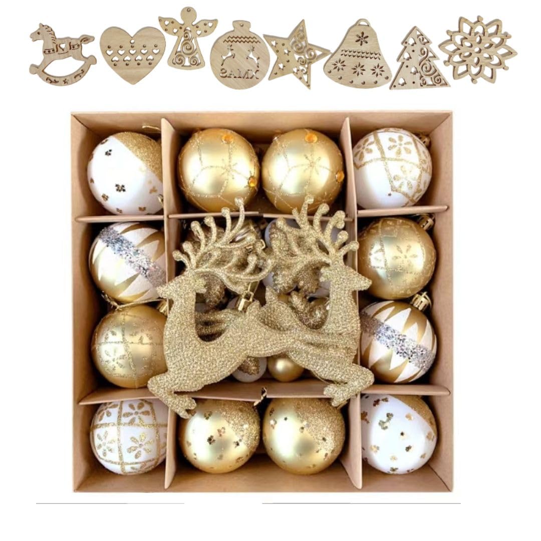 wemitas Рождественская елка 36 6 см x Белый и Большой Скандинавский 8 14 штук Украшения, Шары, 3 см, Золотой, Вместимость, Стиль, Деревянный, Разновидности,