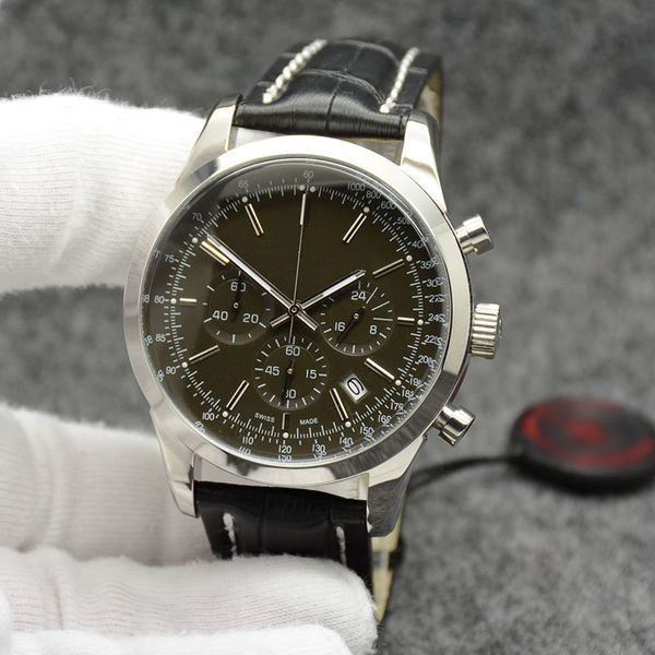 wise mens выбор хронограф unitime кварц открытый многоцелевой черный циферблат мужские часы часы 44мм наручные часы с черным кожаный ремешок, Slivery;brown