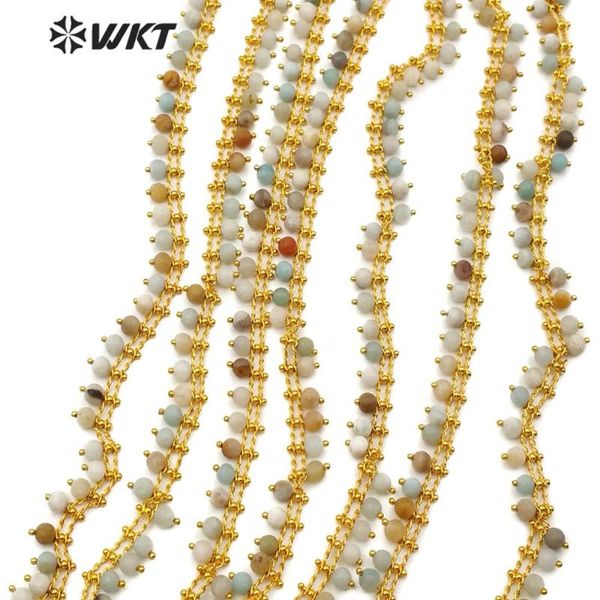 wt-rbc105 природный камень цепи природных амазонит бусы с золотом цвета четки 4mm бисером цепь для изготовления ювелирных изделий, Silver